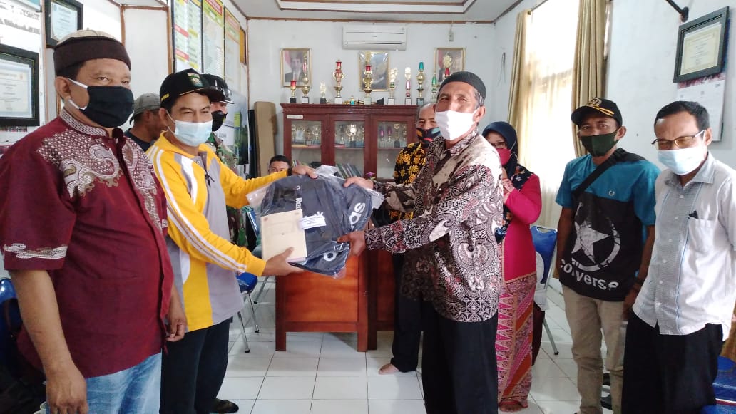 Pemdus sirih sekapur jujuhan secara sembolis menyerahkan bantuan berupa perlengkapan sekolah seperti tas dan alat tulis pada tiga sekolah dasar yang ada di wilayah Dusun Sirih Sekapur.