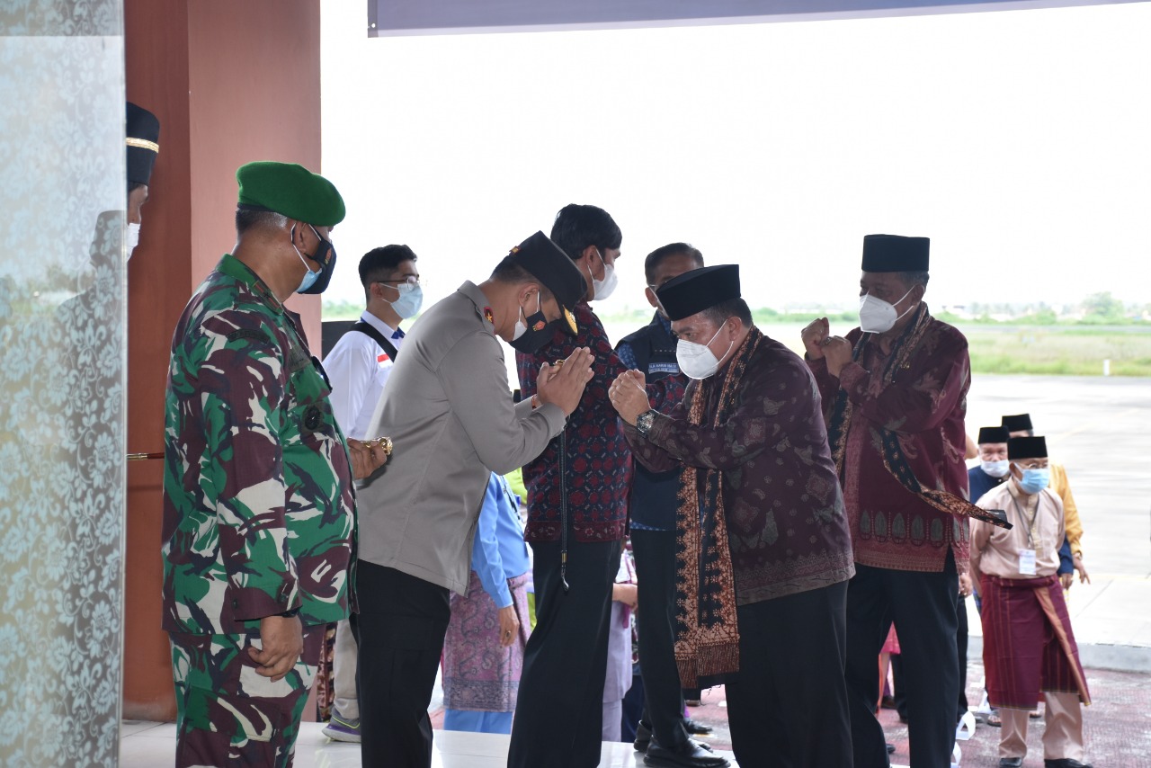 FAKTA JAMBI – Kepolisian Daerah Irjen Pol A. Rachmad Wibowo, SIK menyambut kedatangan Gubernur dan Wakil Gubernur Jambi terpilih di VVIP bandara Sultan Taha Jambi, pada Kamis (08/07/21).