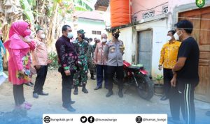 Bupati Bungo bersama unsur forkopimda, kepala dinas kesehatan, kepala dinas sosial, camat pasar Muara Bungo, ketua TP PKK Bungo meninjau langsung masyarakat yang sedang menjalankan isolasi mandiri dirumah.Kamis (29/07/2021).