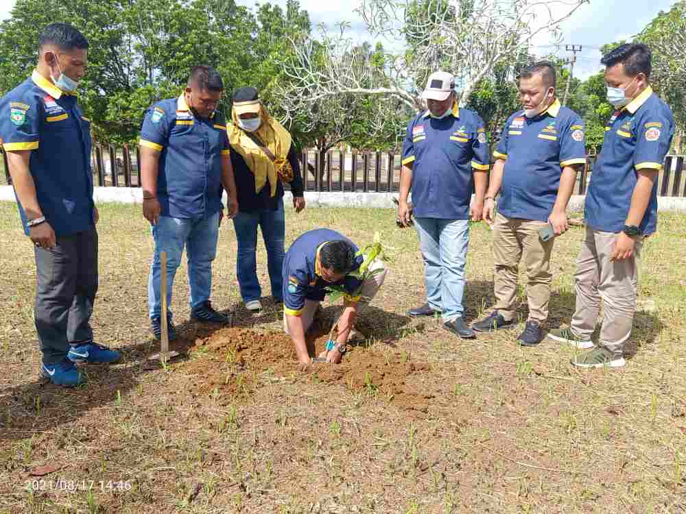 FAKTA BUNGO – Memperingati HUT Kemerdekaan RI Ke-76, ketua Karang Taruna bersama anggota menanam pohon di Taman Makam Pahlawan Satria Nusantara Kabupaten Bungo