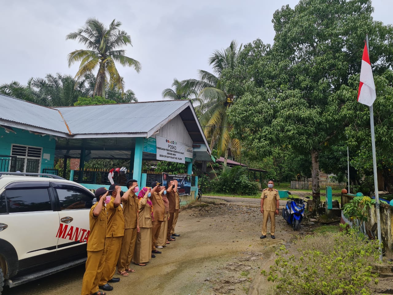 FAKTA BUNGO – Tidak disiplin dalam melayani masyarakat, Staf kantor Rio Dusun Dwi Karya Bakti Supriyanto beri sanksi kepada stafnya dengan hormat bendera merah putih selama 1 jam (60 Menit) di halaman upacara Kantor Dwi Karya Bakti.