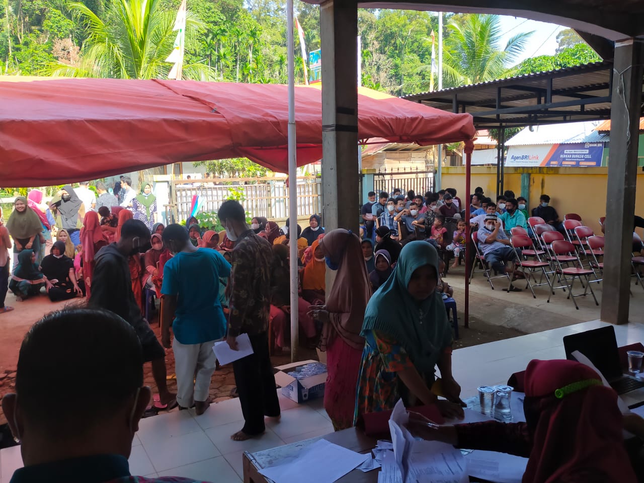 Masih kata Guntur, saat ini jumlah stok vaksin masih tetap tersedia, Proses vaksinasi berjalan dengan lancar dan tetap terapkan protokol Kesehatan (Prokes). Viral menyediakan tenda dan tempat duduk sebagai ruang tunggu.
