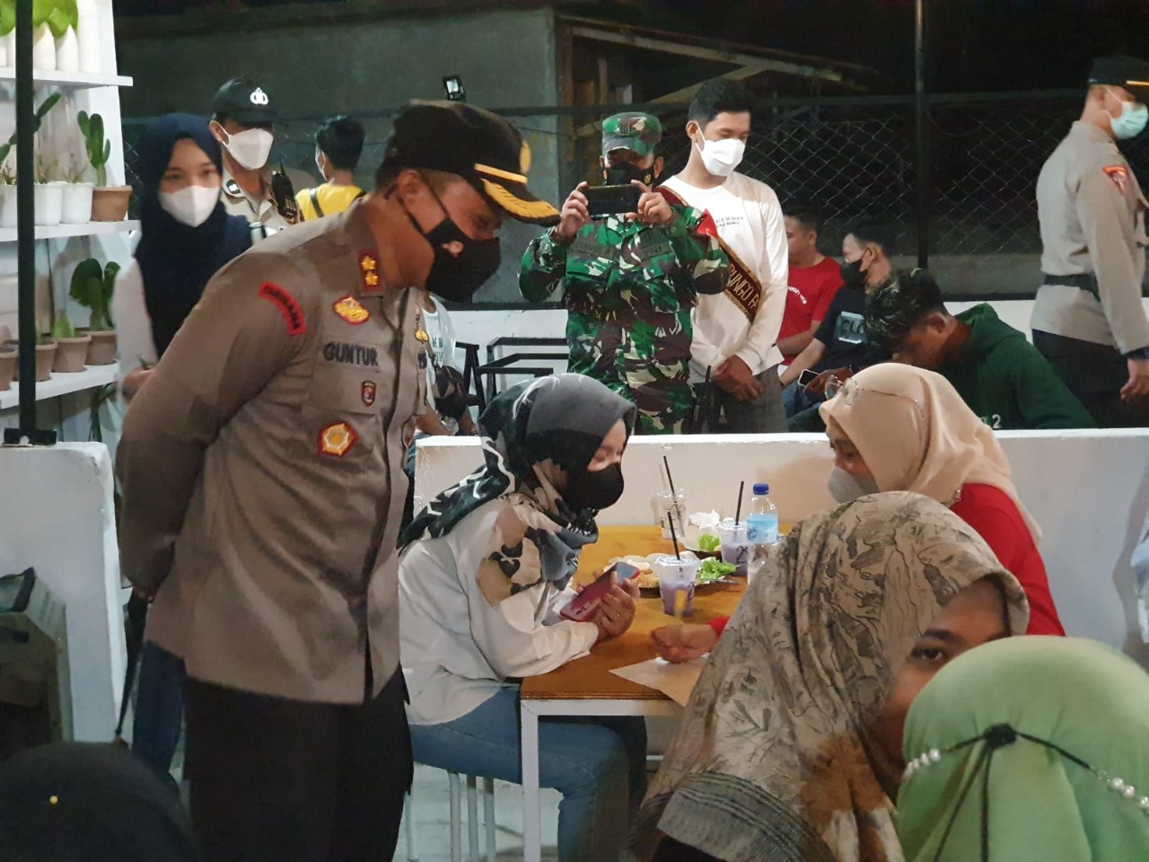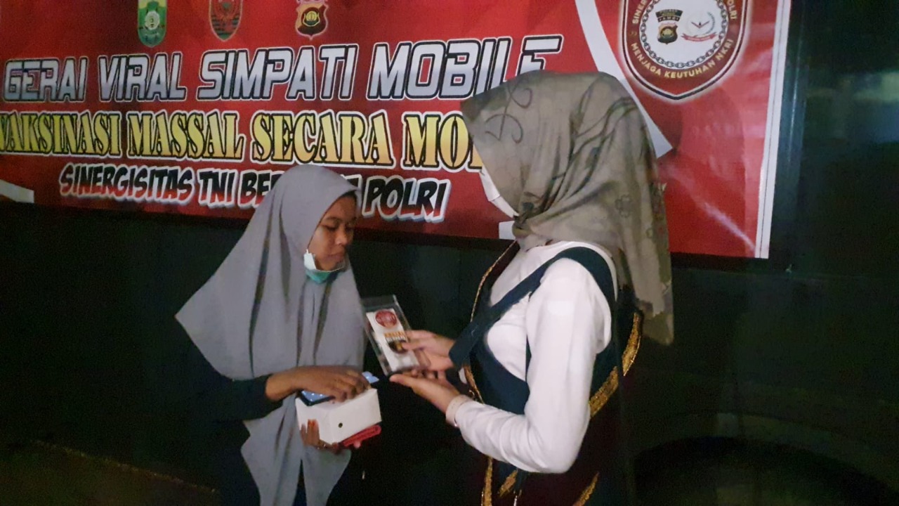 FAKTA BUNGO – Polres Bungo menggelar Gerai Viral Simpati Mobile vaksinasi massal sinergitas TNI-Polri dan Kolaborasi Bujang Gadis Milenial Bungo, sasaran Cafe-cafe di wilayah Kota Muara Bungo, untuk mengawal kepatuhan dan razia vaksin, Sabtu (23/10) malam.