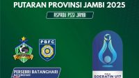 FAKTA BUNGO – Ketua Asosiasi Kabupaten Persatuan Sepakbola seluruh indonesia Bungo (ASKAB PSSI BUNGO) Jumiwan Aguza,SM melepas keberangkatan Bungo Putra FC S ke Kabupaten Batanghari dalam rangka mengikuti turnamen sepak bola Soeratin Cup U-17 yang dilaksanakan di Lapangan KONI Batang hari.