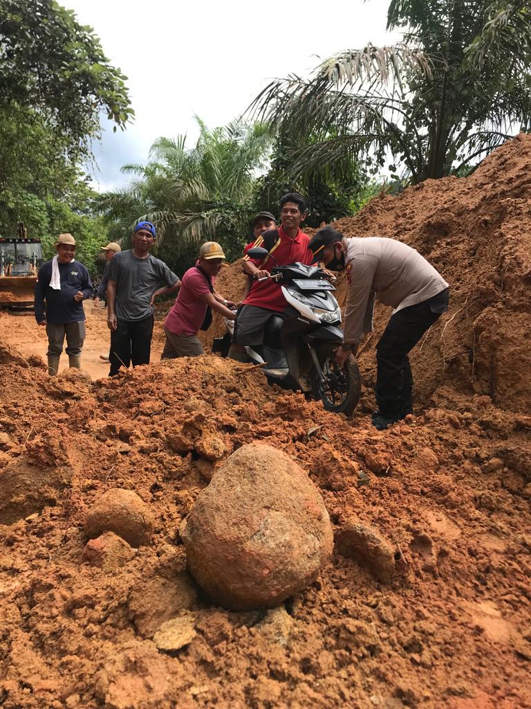 Kapolsek Limbur Bersama Danramil Serta Camat Dan Datuk Rio Bergerak Cepat Mengatasi Longsor