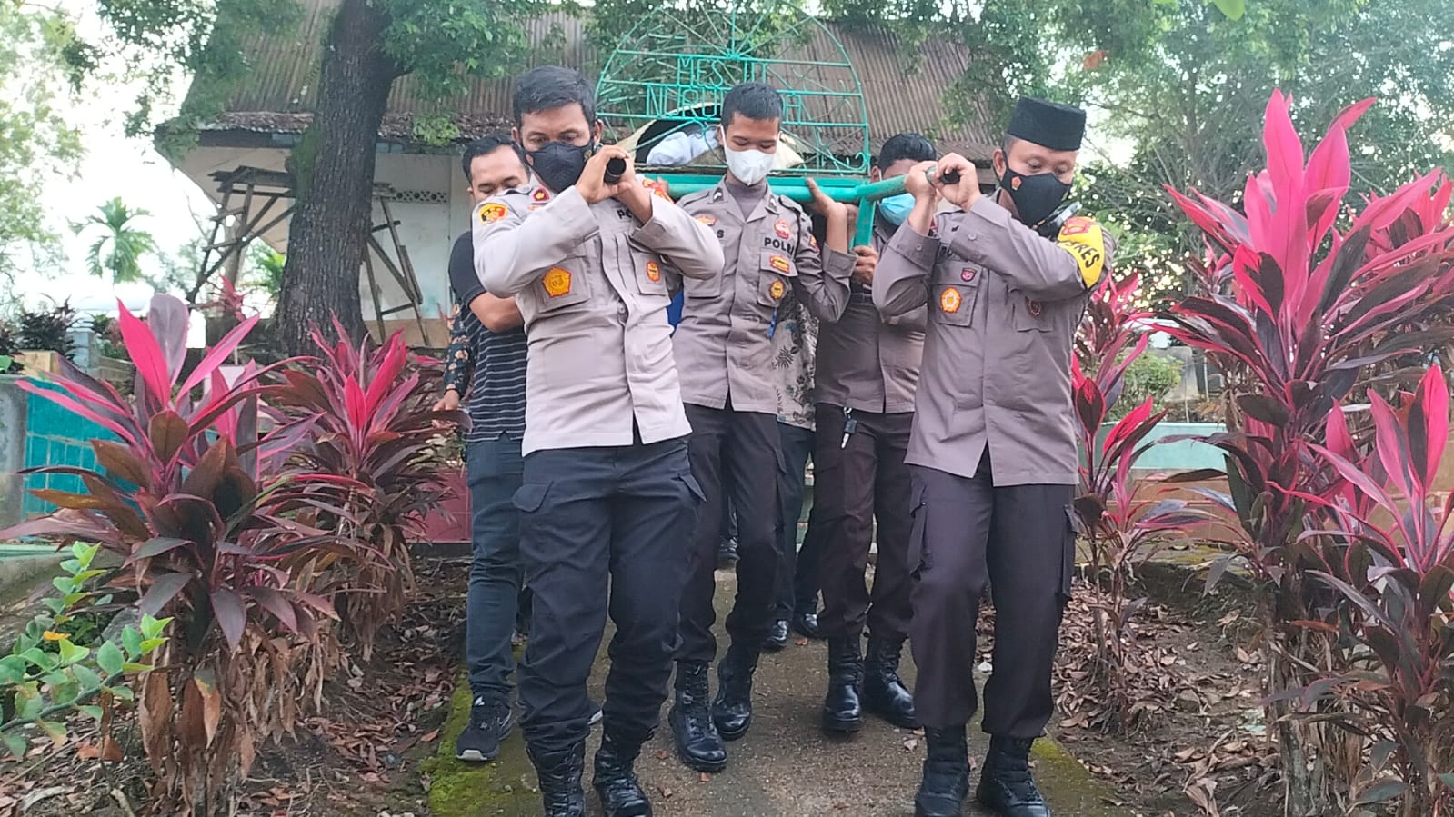 Pantauan dilapangan, terlihat Kapolres Bungo bersama pejabat utama Polres ikut menggotong keranda jenazah, dan juga ikut membantu proses pemakaman di TPU Pal 6 Sungai Mengkuang bersama Bripda Seri sosok Polisi Rimba seorang anggota Polres Bungo.