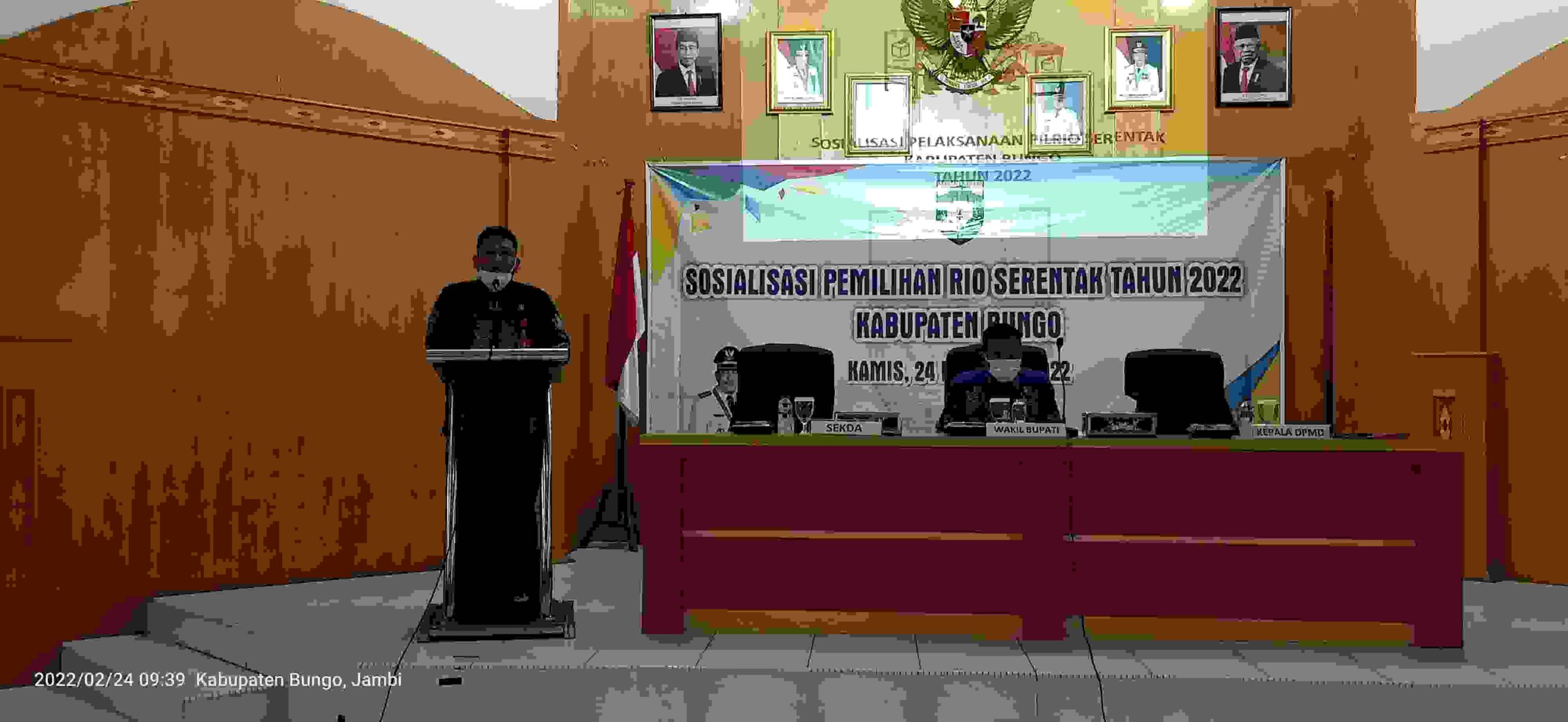 FAKTA BUNGO – Pemerintahan Kabupaten Bungo melalui dinas Pemberdayaan Masyarakat Dusun (PMD) mengadakan sosialisasi Pemilihan Pilrio serentak tahun 2022, di Ruang Pola Kantor Bupati Bungo, Kamis (24/02/2022).
