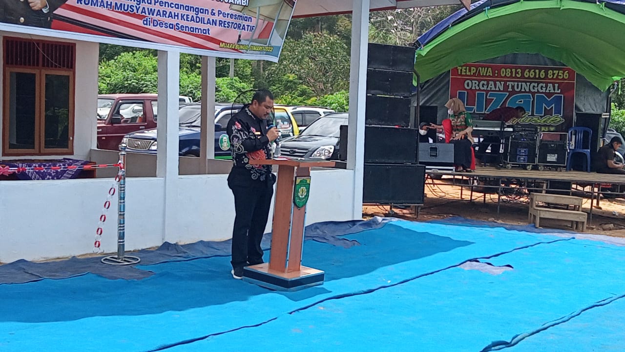 FAKTA BUNGO – Bupati Bungo H. Mashuri, SP, ME menghadiri acara dalam Rangka Pencanangan dan Peresmian RUMAH MUSYAWARAH KEADILAN RESTORATIF di Desa Senamat, Kecamatan Pelepat.