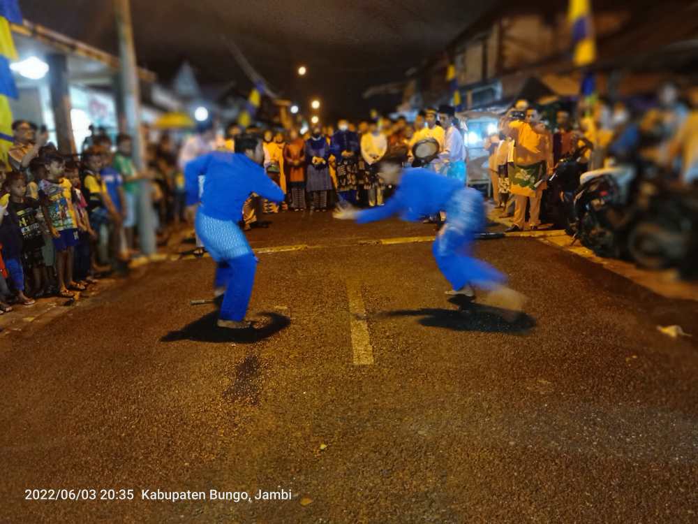 Kedatangan Bupati Bungo beserta rombongan di sambut dengan pemukulan rebana di lanjutkan dengan penampilan pencak silat, dan tarian sekapur sirih.