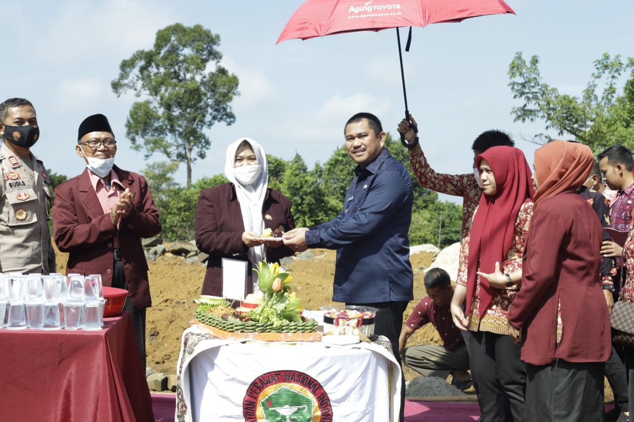 FAKTA BUNGO – Bupati Bungo H.Mashuri.SP.ME melakukan peletakan batu pertama pembangunan Gedung Persatuan Perawat Nasional Indonesia (PPNI) Kabupaten Bungo,pemotongan Nasi Tumpeng,Kamis (16/06/2022). di Lorong Fuso, RT 021, RW 002, Kelurahan Cadika, Kecamatan Rimbo Tengah, Kabupaten Bungo.