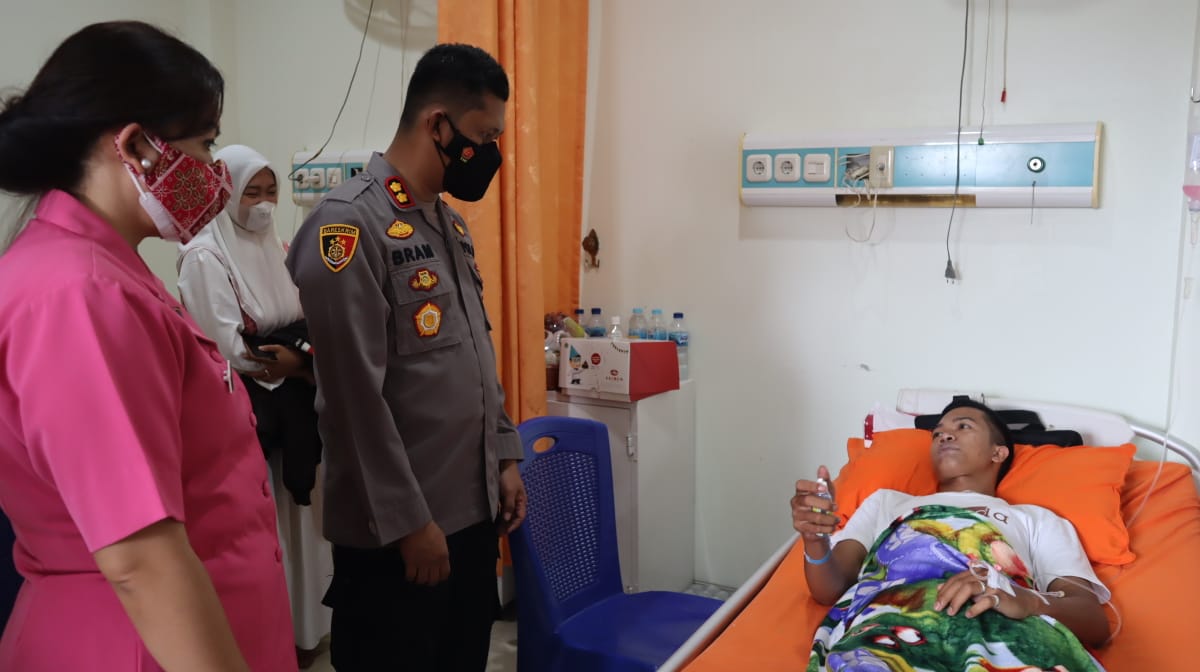 FAKTA BUNGO – Kepedulian atasan kepada bawahan dilakukan oleh Kapolres Bungo AKBP Wahyu Bram, S.H., S.I.K., M.I.K dengan menjenguk Bripda Seri Santoso (Polisi Rimba) yang tengah dirawat di rumah sakit Permata Hati. Senin (26/09/2022).