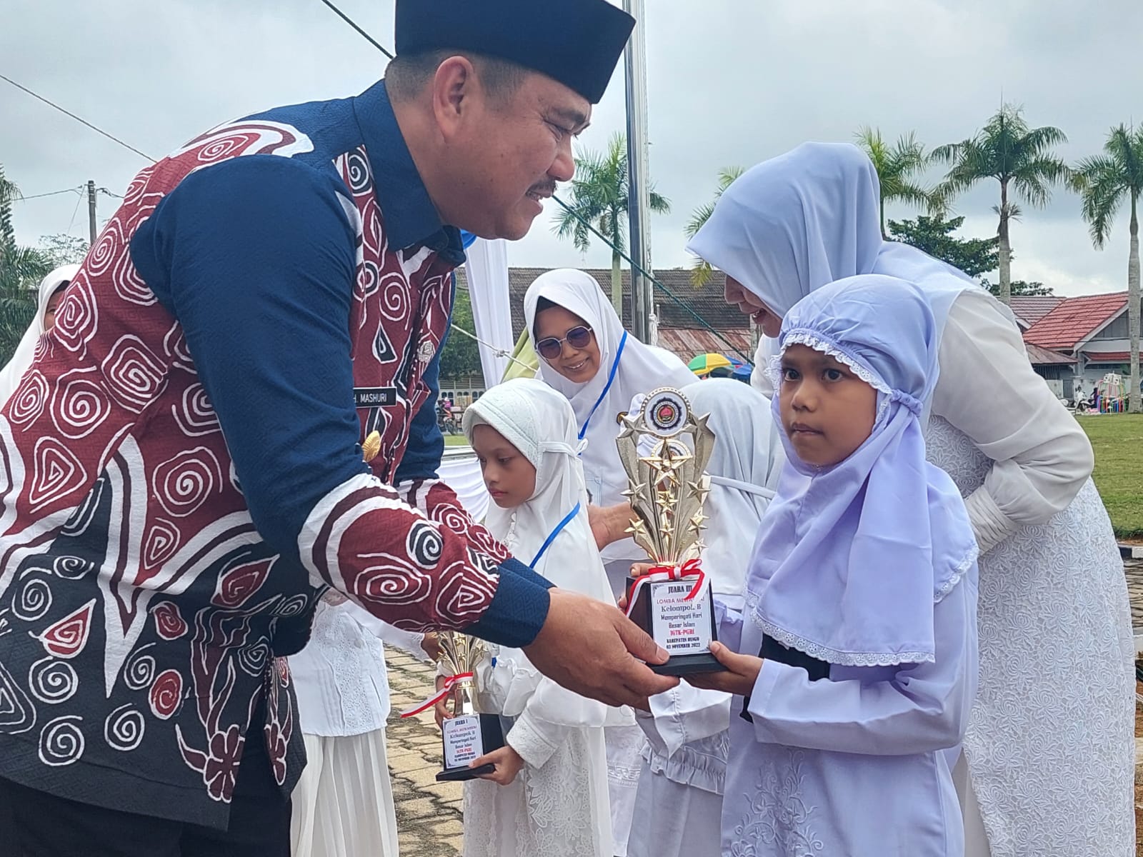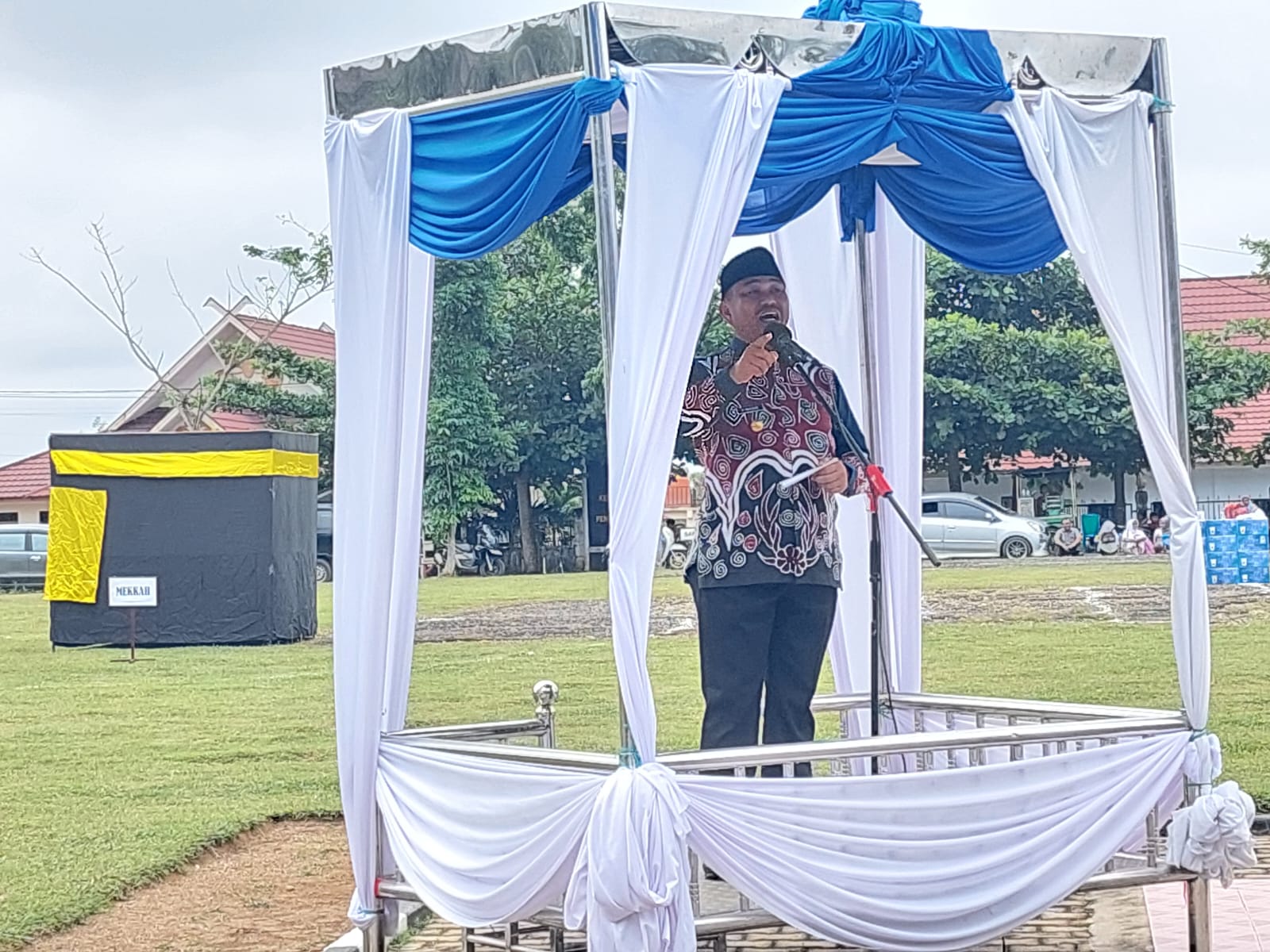 Pembukaan tersebut di hadiri oleh Sekda Bung Drs.Mursidi.,MM, Bunda Paud Dr.Hj Verawaty Mashuri.,M.Pd, Staf Ahli Bupati, Asisten, Kepala OPD,Para Kabag ,Camat, serta para wali murid para anak TK yang sedang mengikuti pelatihan manasik haji.