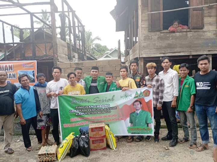 FAKTA BUNGO – Pimpinan cabang gerakan pemuda Ansor Bungo (PC GP Ansor Bungo) menyerahkan bantuan untuk korban kebakaran di Desa Tanjung Kecamatan Tanah Sepenggal Bungo.(09/11)
