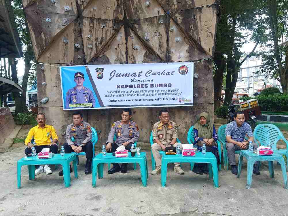 FAKTA BUNGO – Sebagaimana program Kapolri dengan seluruh jajaran Kepolisian RI, kali ini Jumat Curhat Kapolres Bungo hari ini dilaksanakan di lapangan Pusparagam Semagor, Kecamatan Pasar Muara Bungo, Kabupaten Bungo, (27/01/2023).