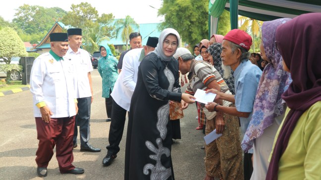 Sedangkan untuk penyerahan bantuan hari ini terhadap para fakir miskin serta para pegawai sara yang tersebar di seluruh kota dan desa dalam Kabupaten Bungo yang akan disalurkan melalui para KUA, Kecamatan, pengurus BAZNAS, UPS dan unsur pentas seni sebanyak 13.300 amplop yang setiap amplopnya berisi 200.000 dengan total keseluruhan Rp. 2.641.600.000 yang akan disalurkan pada hari ini,”Kata Duminis As.