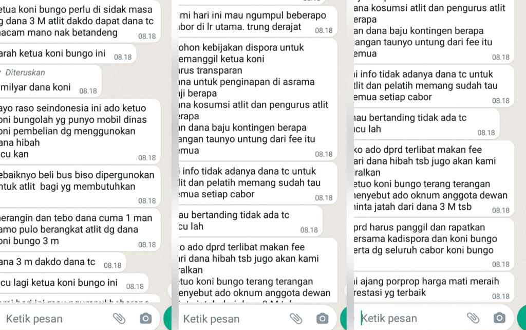 Berikut Cuitan di WhatsApp (WA) yang berhasil di screenshot oleh wakil ketua I DPRD Bungo Jumiwan Aguza,S.M.