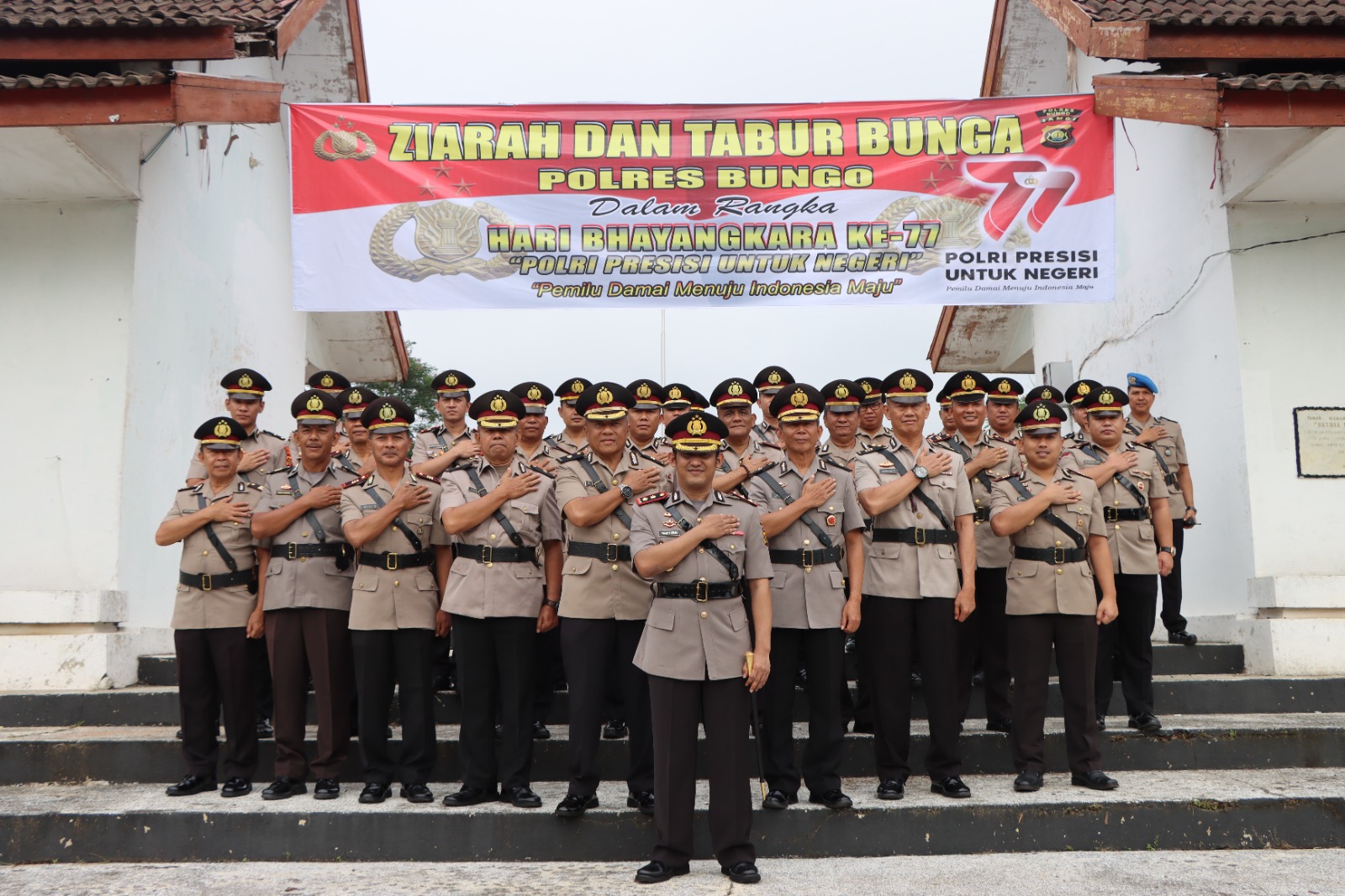 Ziarah makam diikuti seluruh personel Polres Bungo, Kapolsek jajaran, perwakilan personel Polsek jajaran dan dipimpin Kapolres Bungo AKBP Wahyu Bram, S.H., S.I.K., M.I.K.