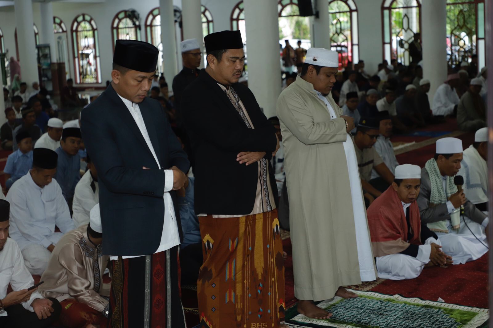 FAKTA BUNGO –Bupati Bungo H.Mashuri.,S.P.M.E, beserta istri, dan Wakil Bupati H.Safrudin Dwi Aprianto,S.Pd,M.M, beserta istri, melaksanakan sholat Idul Adha 1444H di Mesjid Agung Al-Mubarak,Muara Bungo, Kamis (29/06/2023).