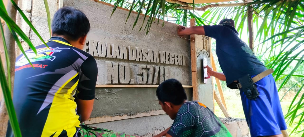 Satgas TMMD Bersama Warga Talang Silungko Tuntaskan Papan Nama SD 57