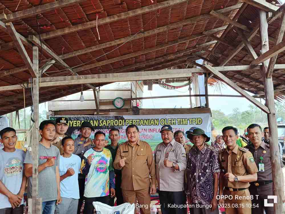 Selanjutnya Bupati Bungo H.Mashuri.S.P.M.E didampingi Oleh Kadis TPH &Bun Kabupaten Bungo menyerahkan Saprodi Pertanian oleh tim TPID.