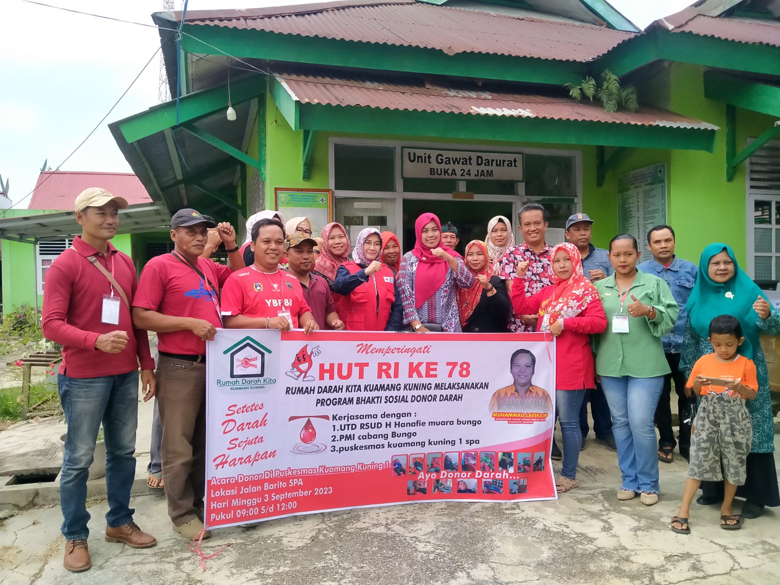 FAKTA BUNGO – Memperingati HUT kemerdekaan RI ke 78 dan hari Palang Merah Indonesia (PMI) tahun 2023, Rumah Darah kita Kuamang Kuning (RDKK) menggelar program kegiatan perdana Bhakti sosial Donor Darah bertempat di Puskesmas Kuamang Kuning I SPA.
