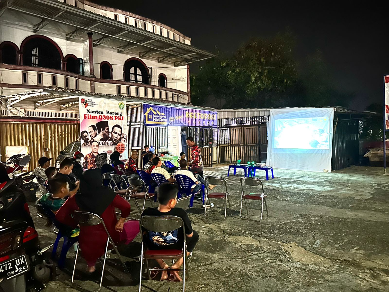 FAKTA BUNGO – Ketua Majelis Pimpinan Cabang (MPC) Pemuda Pancasila Kabupaten Bungo beserta anggota menggelar nonton bareng (Nobar) film tentang Gerakan 30 September PKI atau G30SPKI di areal sekretariat Pemuda Pancasila Kabupaten Bungo, Jl Teuku Umar,Kelurahan Pasir Putih, Kecamatan Rimbo Tengah, Kabupaten Bungo.
