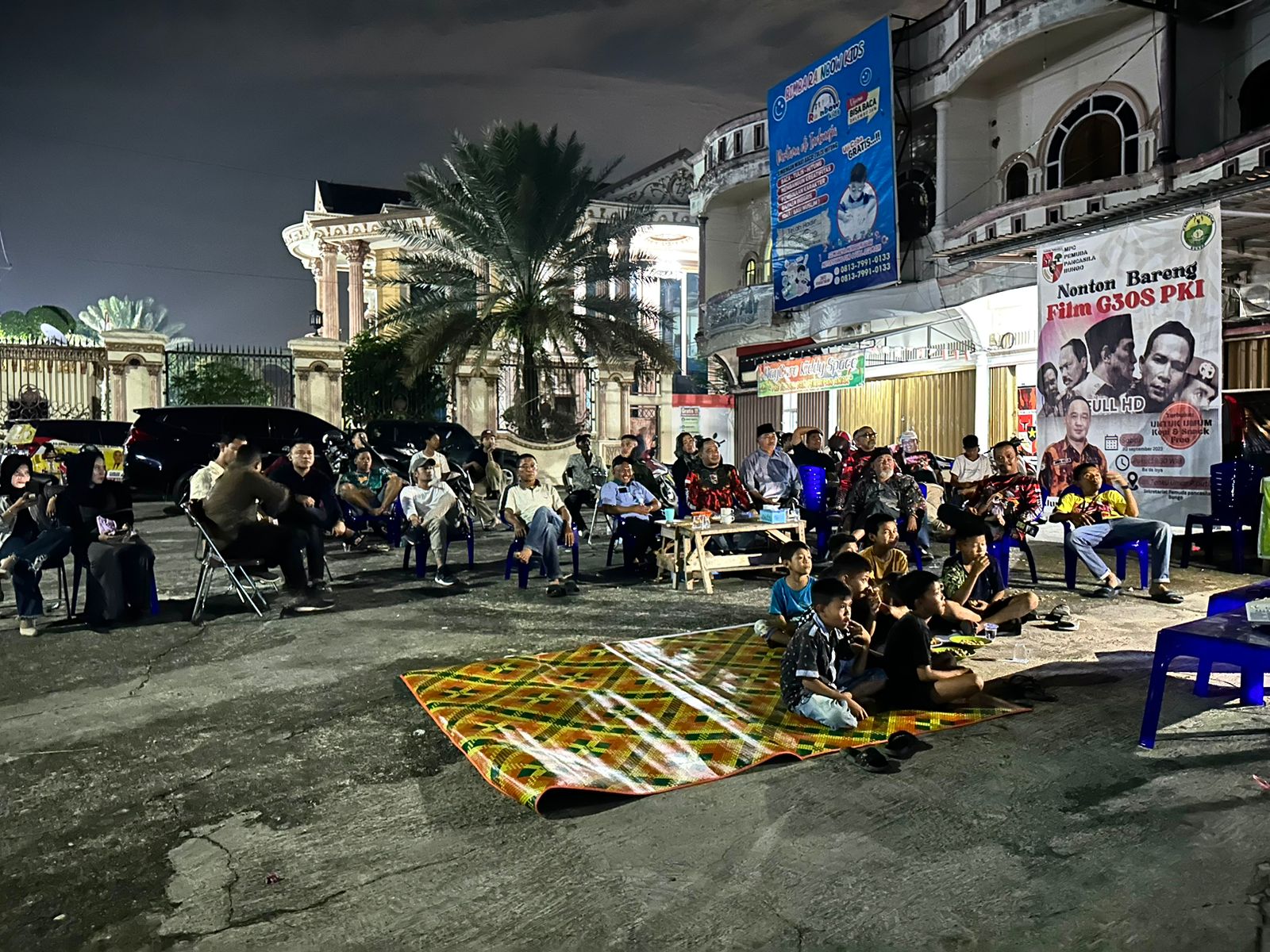 Hadir dalam Nobar ini ,Unsur Forkopimda yang di Wakili oleh Kasat Intel, Wakil Ketua PC 0505 KB FKPPI Bungo, Sekretaris MPC Pemuda Pancasila, Srikandi Pemuda Pancasila Kabupaten Bungo dan masyarakat yang ikut mampir dalam nobar film G30SPKI itu.serta anak-anak (FB)