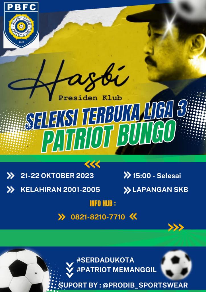 Dalam hal ini Muhammad Hasbi,S.P,M.Si selaku Presiden Direktur Patriot Bungo FC mengatakan, “kami akan menggelar seleksi terbuka bagi pemain untuk berlaga di liga 3 tahun 2023,”Ujarnya.