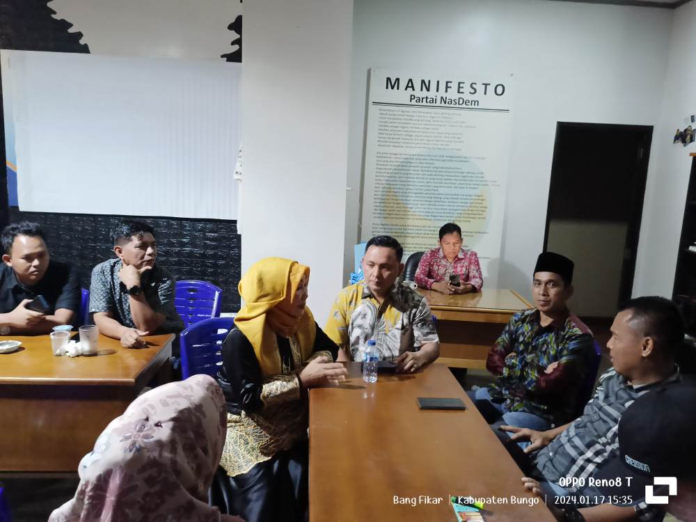 Ia kumpulkan beberapa caleg yang hadir di kantor DPD partai NasDem Bungo terkait dengan menghadapi pemilu serentak di mulai dari pemilihan Presiden, Wakil Presiden, dan legislatif dari pusat hingga Kabupaten Kota.
