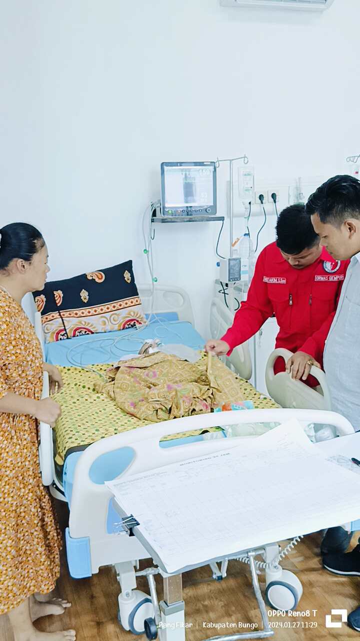 Gambar : Ketua Ormas GEMPUR Kabupaten Bungo Alpindo Mustakim,S.Sos bersama Indra Sakti S.I.P Saat Menjenguk Natan Penderita Gizi Buruk Di RSUD H.Hanafie