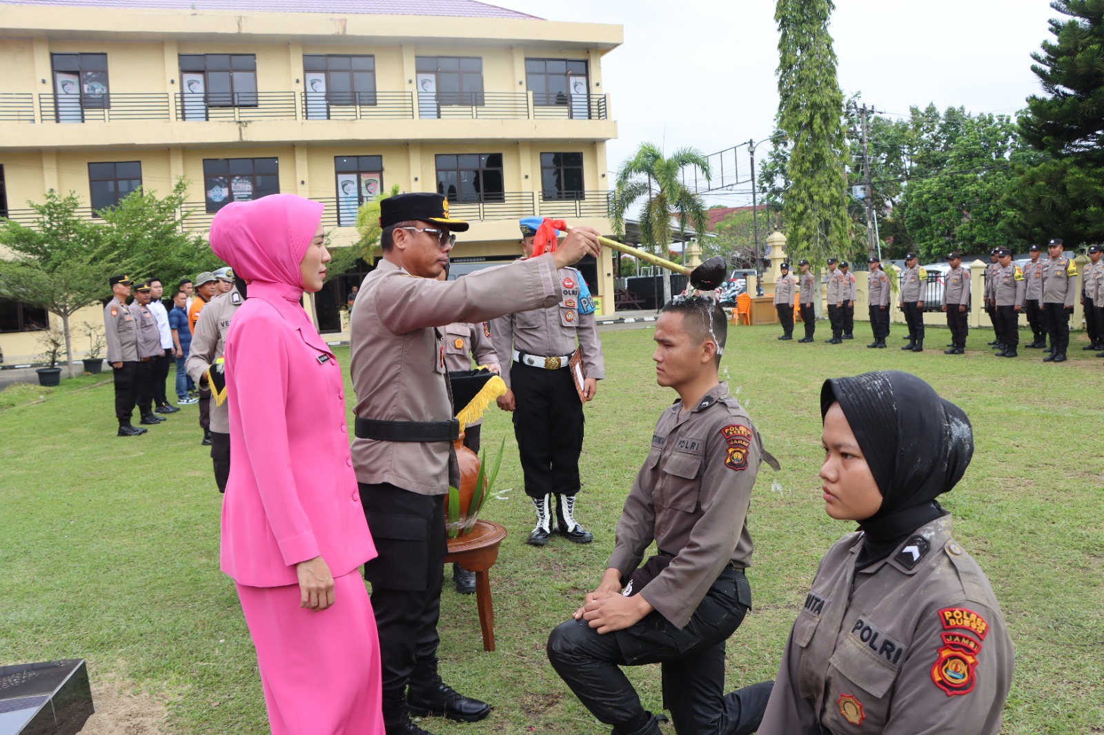 Acara Tradisi penyambutan Bintara Polri Angkatan-XXIV Polda Jambi dipimpin langsung Kapolres Bungo AKBP Singgih Hermawan, S.I.K., M.A.P dihadiri Pejabat Utama Polres Bungo dan Ketua Bhayangkari Cabang Bungo Ny. Eka Singgih dan seluruh personel Polres Bungo
