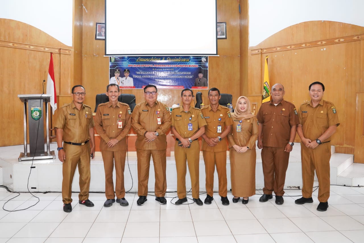 *Oleh karena itu saya mengharapkan agar melalui kegiatan launching dan sosialisasi pada hari ini dapat dijadikan momentum penting bagi kita khususnya ASN di lingkungan Pemerintah Kabupaten Bungo, untuk memaknai pelaksanaan tugas sebagai pilar good and clean governance sekaligus sebagai integrasi memori kolektif. Tentunya hal ini harus menjadi motivasi bagi para ASN untuk dapat melakukan pengelolaan dan pemantapan pelaksanaan tugas yang baik dan prosedural berbasis teknologi digital secara terintegrasi dan akurat. Hal ini penting untuk dilaksanakan sebab era yang berkembang sekarang ini, mengharuskan bagi setiap ASN dalam melaksanakan tugasnya tidak semata-mata berorientasi pada prosedur yang berlaku tapi sangat penting untuk diperhatikan bahwa kinerja yang dilakukan harus betul-betul dilaksanakan dengan cepat, cermat, dan tepat serta berorientasi pada hasil. Dan tidak kalah pentingnya adalah hasil yang dapat bermanfaat dan dapat dirasakan oleh masyarakat.”katanya.