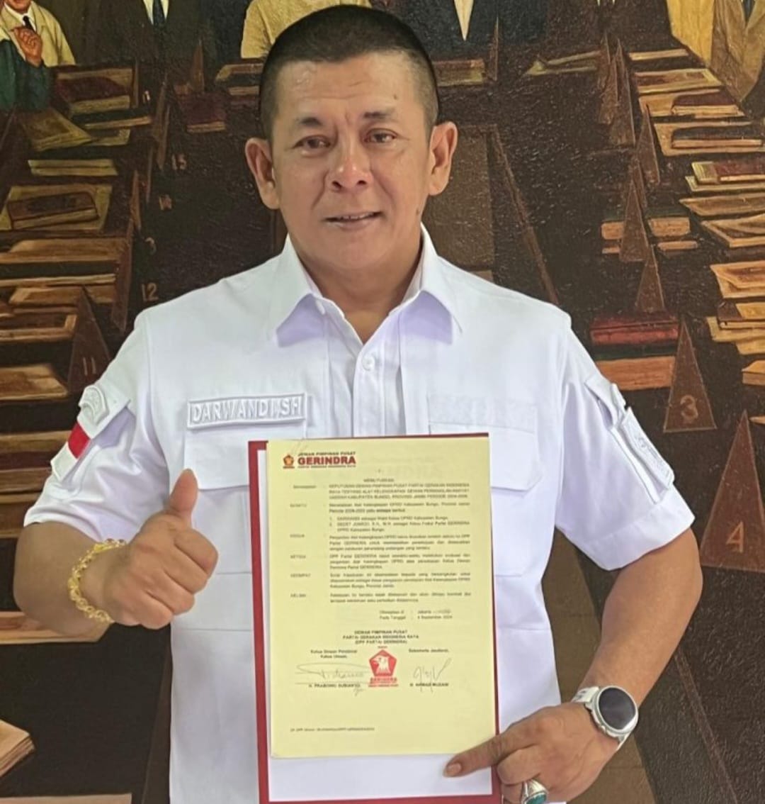 FAKTA BUNGO – DPP Partai Gerindra resmi mengeluarkan Surat Keputusan (SK) penunjukan Darwandi, S.H, sebagai pimpinan Defenitif DPRD kabupaten Bungo periode 2024-2029.