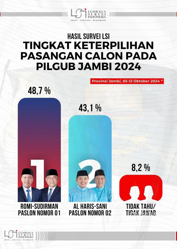 (2) Hasil survei terbaru LSI dimana keterpilihan roman lebih unggul diatas 5%.