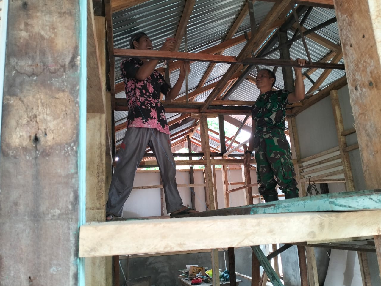 Rehabilitasi RLTH Milik Hendri Sudah Sampai Pemasangan Rangka Plafon Oleh Satgas TMMD Me-123