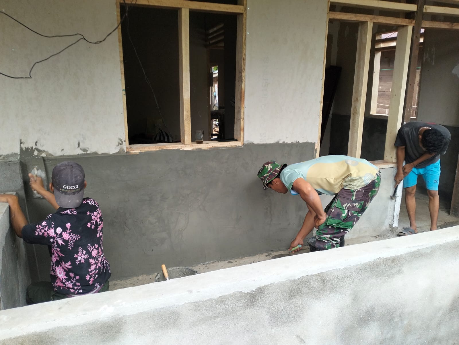 Saat ini, Satgas TMMD sedang mengerjakan pengacian pada plester dinding sebagai tahap penyempurnaan pembangunan.