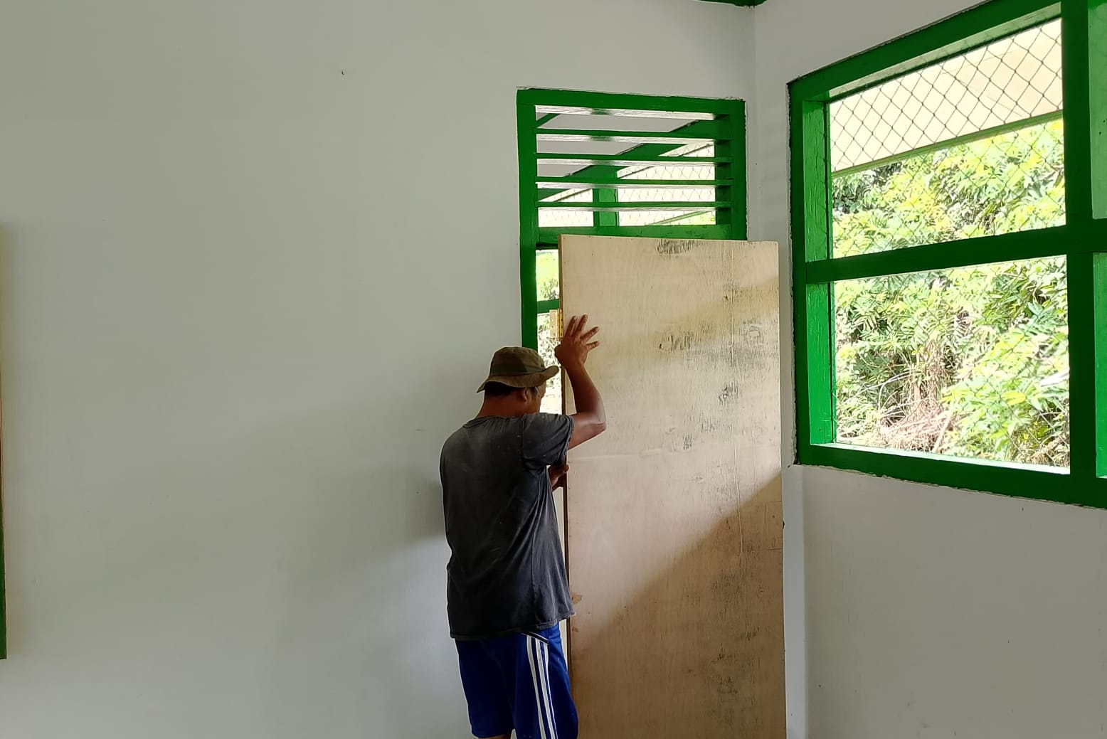 Pemasangan pintu sekat ini merupakan bagian dari program rehabilitasi madrasah yang sedang dikerjakan Satgas TMMD.