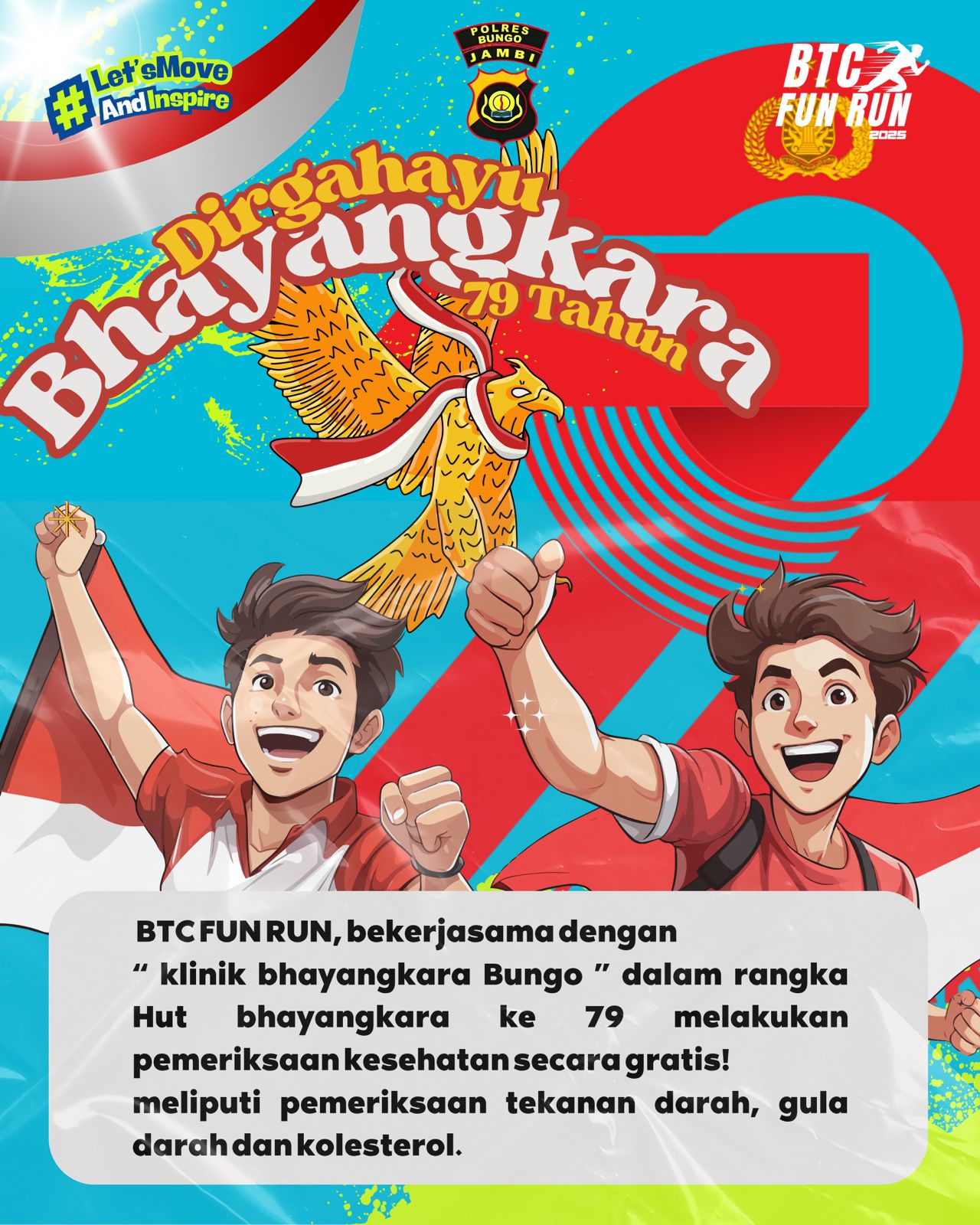 FAKTA BUNGO – Dalam rangka memperingati Hari Ulang Tahun (HUT) Bhayangkara ke-79, Polres Bungo menggelar kegiatan BTC Funrun yang diikuti oleh ratusan peserta dari berbagai kalangan. Pada hari Minggu tanggal 22 Juni 2025 pukul 07.00 WIB sampai selesai di Arena MTQ Baru, Kabupaten Bungo.