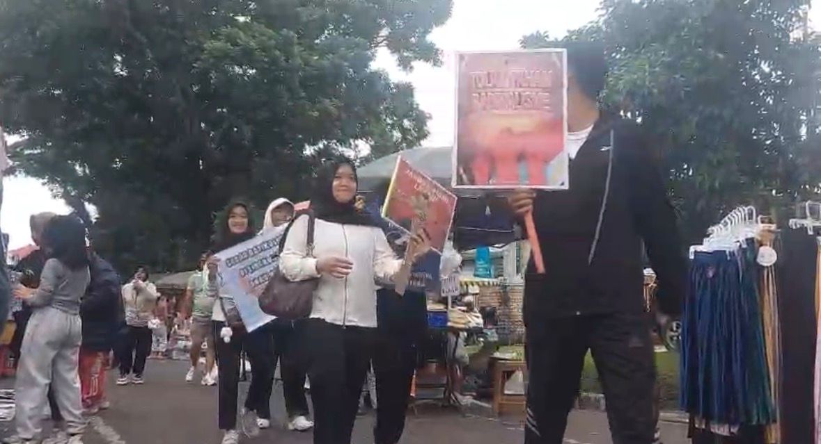 Aksi dimulai dengan apel bersama di halaman Kantor Gubernur Jambi, kemudian dilanjutkan jalan kaki keliling area CFD sambil menyapa warga dan membagikan materi edukasi pencegahan paham radikal. Suasana berlangsung hangat dan penuh semangat kebersamaan.