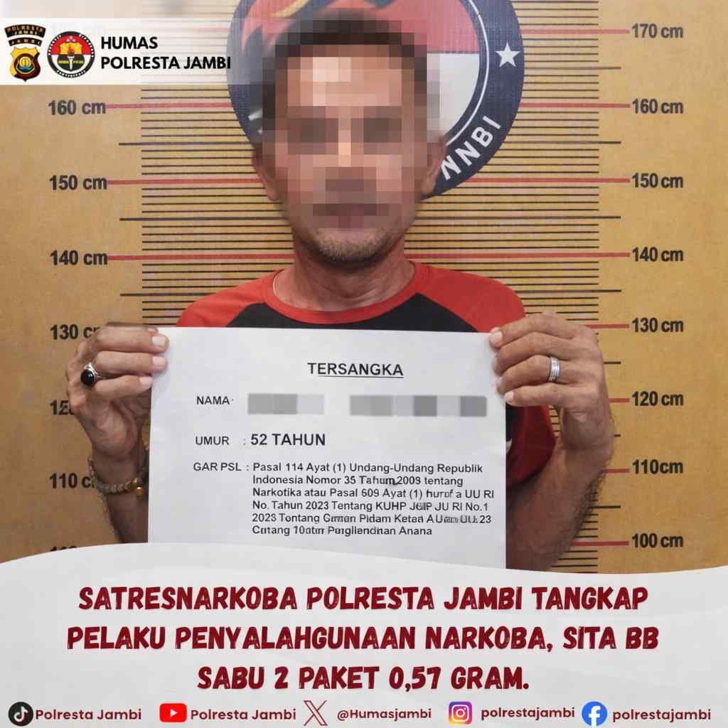 Berdasarkan keterangan resmi dari Humas Polresta Jambi, tersangka diamankan setelah petugas melakukan penyelidikan terkait dugaan penyalahgunaan narkotika.