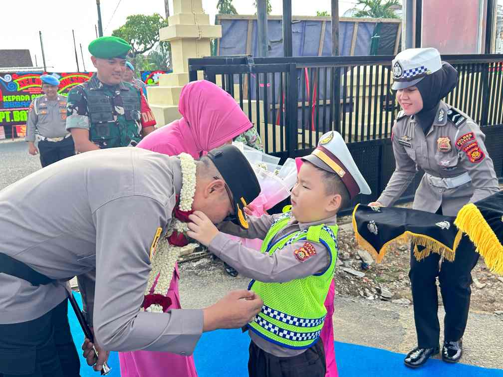 Prosesi penyambutan berlangsung khidmat dan penuh keakraban. Kedatangan Kapolres Bungo bersama Ketua Bhayangkari disambut dengan pengalungan bunga oleh Bhayangkari, serta penampilan dari Satlantas Cilik Polres Bungo yang turut memeriahkan acara penyambutan tersebut.