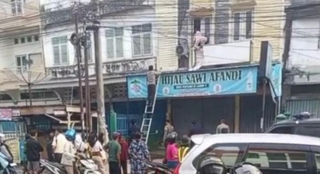 Ketakutan, korban bersama dua anaknya langsung mengunci diri di dalam kamar yang berada di lantai dua ruko tersebut.