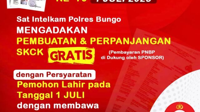 FAKTA BUNGO – Dalam rangka menyambut Hari Ulang Tahun (HUT) Bhayangkara ke-79, Satuan Intelkam Polres Bungo ..Baca Selengkapnya…