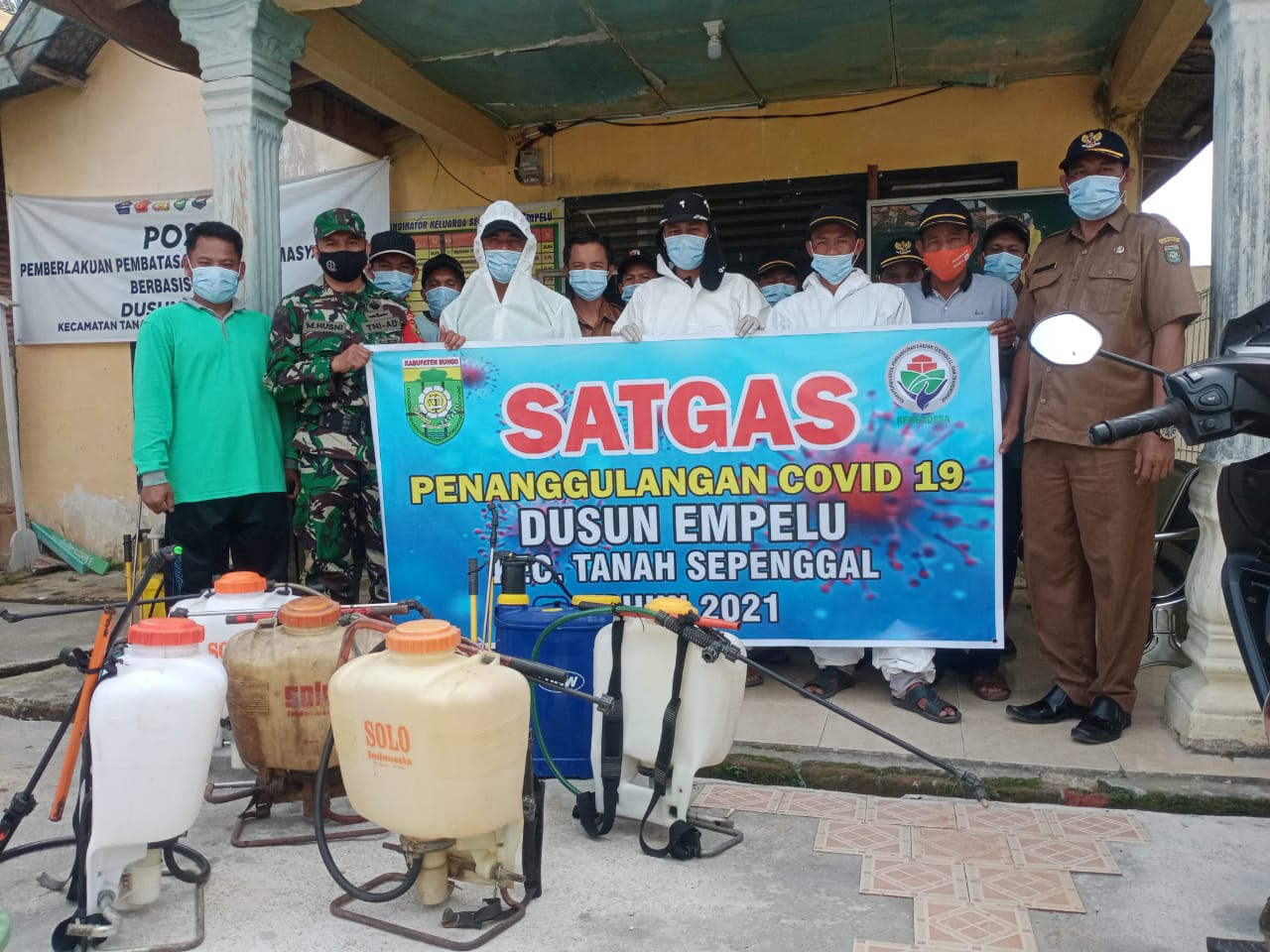 Cegah Penularan Covid-19, Pemdus Empelu Bersama Mahasiswa UIN STS Jambi Melakukan Penyemprotan Disinfektan